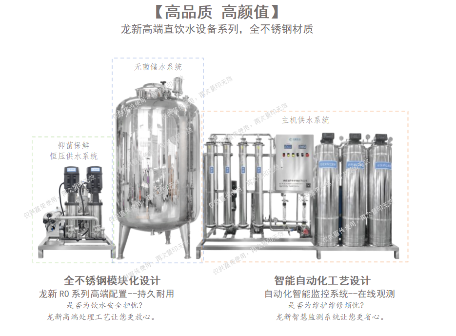本系列凈飲機(jī)設(shè)備可用于餐飲廚房、別墅住宅全屋凈水、校園直飲水、企事業(yè)單位、醫(yī)院直飲水、工廠直飲水、服務(wù)區(qū)直飲水等領(lǐng)域。