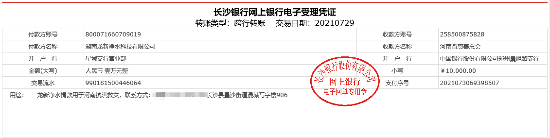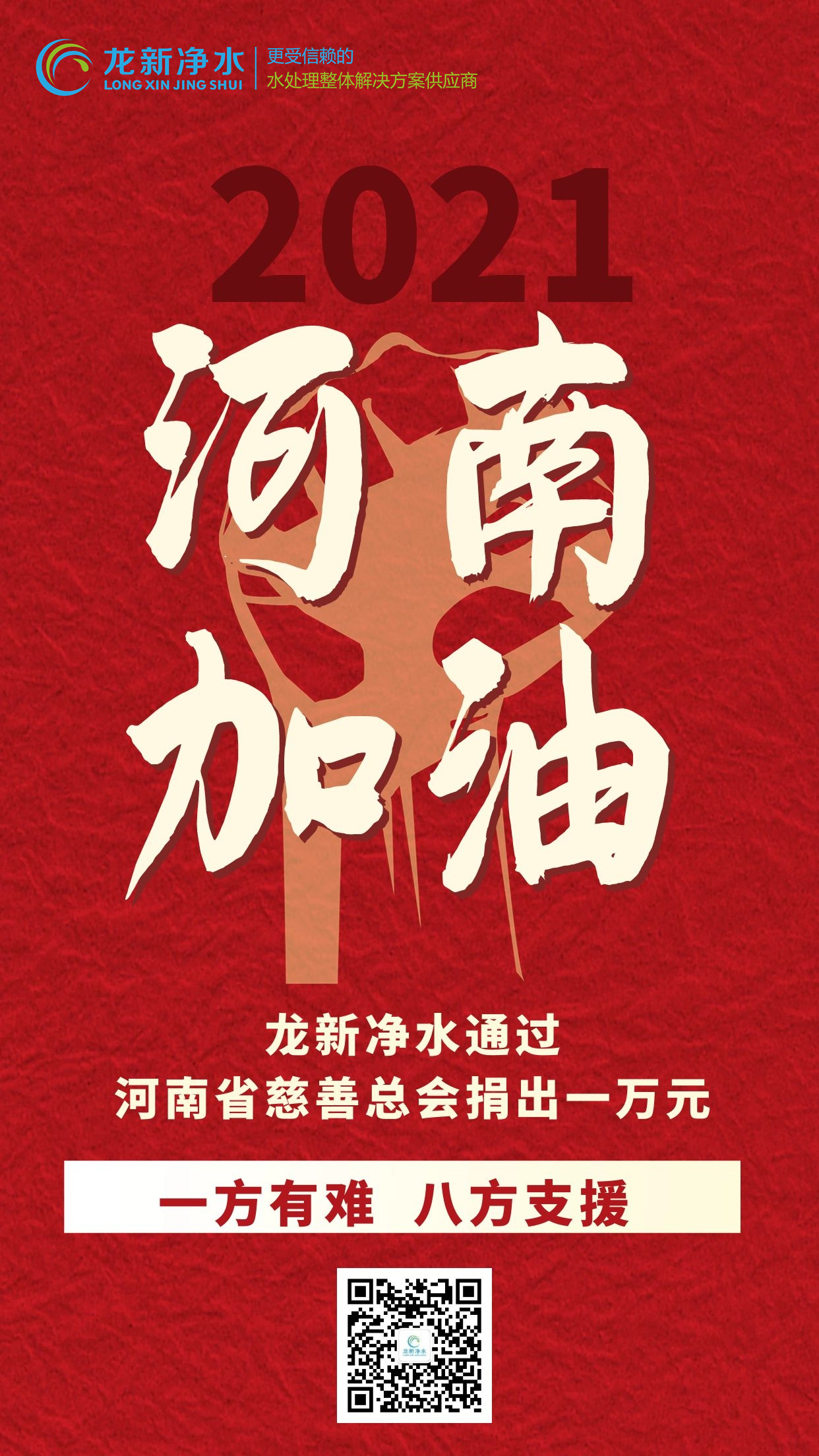 龍新凈水時刻牽掛著救災進展,希望以綿薄之力,與社會各界的支持一起匯成強大的援助之力,幫助受災群眾共渡難關。龍新凈水已向河南省慈善總會捐出1萬元,風“豫”同舟,我們在一起! 河南加油!